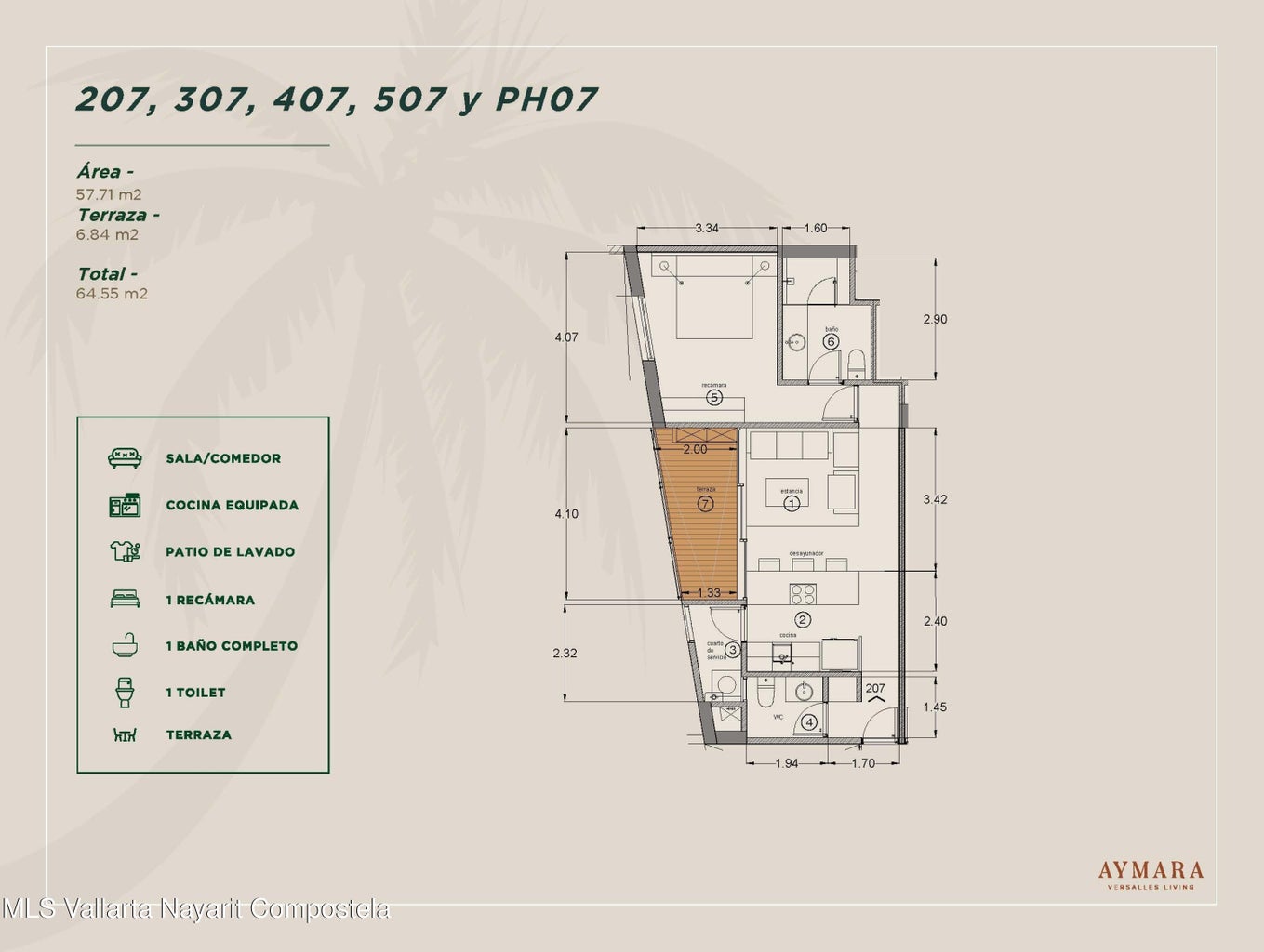 Aymara Versalles se encuentra en el corazon de la Colonia Versalles, en las calles Aldanaca y Berlin, una de las zonas de mas rapido crecimiento de Puerto Vallarta. El complejo cuenta con 43 unidades residenciales y una selecta variedad de practicos locales comerciales, dentro de un concepto moderno que combina un diseno cuidado, funcionalidad y una ubicacion muy conveniente. Las residencias tienen entre 64,55 m2 y 143,88 m2, con distribuciones de 1, 2 y 3 dormitorios disenadas tanto para una vida comoda como para un solido potencial de inversion. El proyecto ofrece acabados de alta calidad, amplias terrazas y acogedoras zonas comunes que complementan el dinamico estilo de