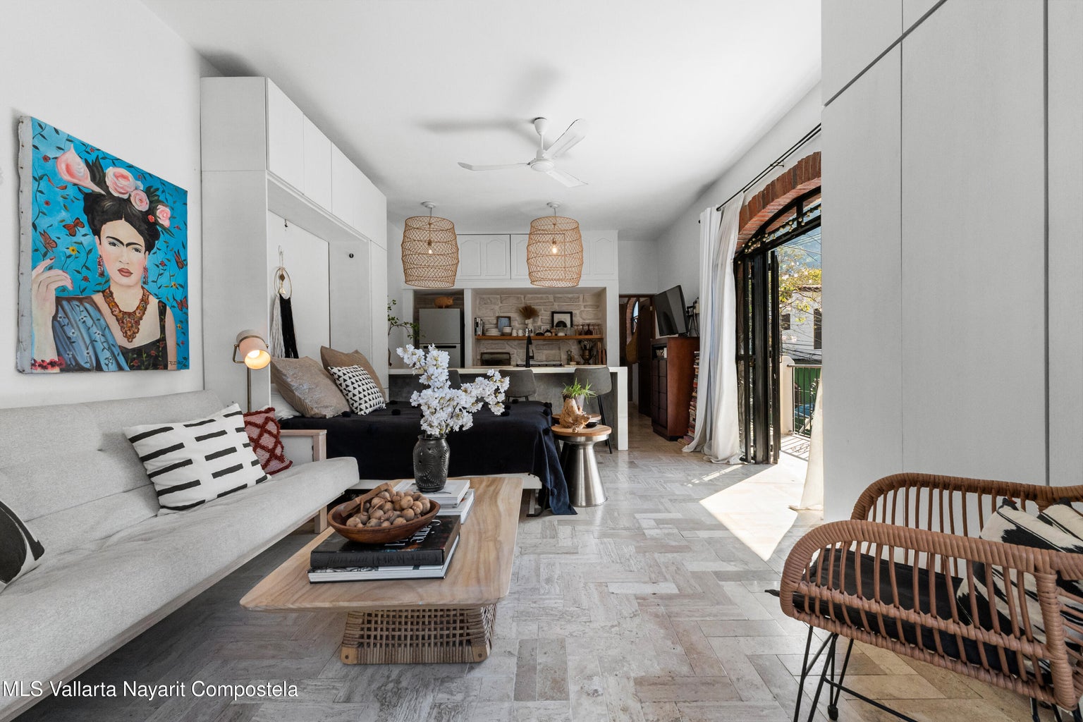 Tucked away just moments from the vibrant heart of the Zona Romántica, Casita Palmas Studio offers the perfect blend of charm, comfort, and coastal living. This thoughtfully designed studio features a spacious full bathroom, a surprisingly large kitchen, and a clever Murphy bed that allows the space to effortlessly transition from a bright daytime retreat to a cozy evening sanctuary. Step onto the wrap-around balcony, where gentle breezes and lush surroundings create the perfect setting for morning coffee or sunset cocktails. Sold fully furnished and move-in ready, it's ideal as a personal getaway, full-time residence, or vacation rental. Located within a gated community with a swimming pool, BBQ area, storage, and secure unassigned parking. Just minutes from Zona Romantica.