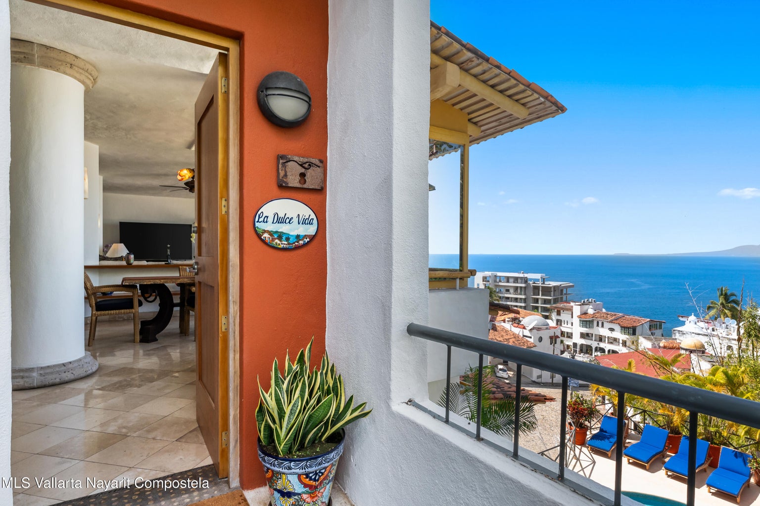 Experience unique, tranquil and very private coastal living in Upper Conchas Chinas, five minutes from the Romantic Zone, and walking distance to the beach. This elegant 4,100 square foot, Mexican-inspired condo has sweeping ocean views from every room which are all on one level. You will have ultimate convenience with a private entrance directly into the unit from the elevator, or the stairway, which both open onto the spacious floor-plan.