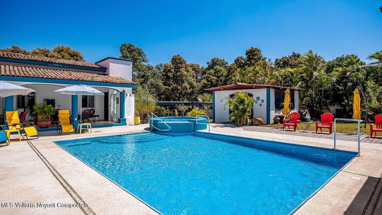 Oportunidad de Inversión - 7 Viviendas con Alberca, ¡A sólo 15 Minutos de la Playa Bucerías! Perfecto para los inversores que buscan ingresos por alquiler o una familia grande que desean un refugio privado en un entorno rural sereno, pero cerca de todo. Situado en un lote de 1.515 m², cuenta con una piscina privada, gazebo, cobertizo de almacenamiento, y mucho más. Casa principal: 1.283 pies cuadrados (1 cama, 2 baños) Cuatro Suites: 700 pies cuadrados cada una + patios (1 cama, 1 baño) Suite de la piscina: 946 pies cuadrados 1 baño Suite de invitados (junto a la piscina): Estudio 6 unidades amuebladas partial y listas para entrar a vivir. Ideal para alquileres a largo plazo, un retiro de vacaciones boutique, o un compuesto Multi-generacional. Contacto hoy!