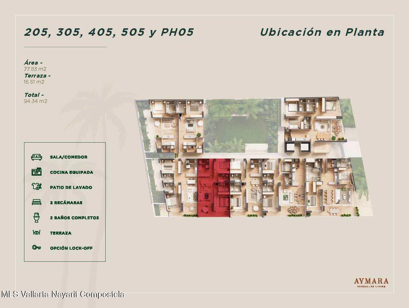 Aymara Versalles se encuentra en el corazon de la Colonia Versalles, en las calles Aldanaca y Berlin, una de las zonas de mas rapido crecimiento de Puerto Vallarta. El complejo cuenta con 43 unidades residenciales y una selecta variedad de practicos locales comerciales, dentro de un concepto moderno que combina un diseno cuidado, funcionalidad y una ubicacion muy conveniente. Las residencias tienen entre 64,55 m2 y 143,88 m2, con distribuciones de 1, 2 y 3 dormitorios disenadas tanto para una vida comoda como para un solido potencial de inversion. El proyecto ofrece acabados de alta calidad, amplias terrazas y acogedoras zonas comunes que complementan el dinamico estilo de