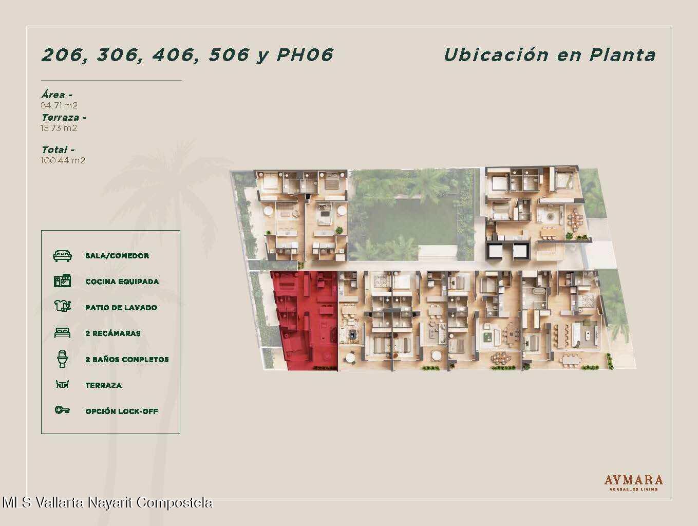 Aymara Versalles se encuentra en el corazon de la Colonia Versalles, en las calles Aldanaca y Berlin, una de las zonas de mas rapido crecimiento de Puerto Vallarta. El complejo cuenta con 43 unidades residenciales y una selecta variedad de practicos locales comerciales, dentro de un concepto moderno que combina un diseno cuidado, funcionalidad y una ubicacion muy conveniente. Las residencias tienen entre 64,55 m2 y 143,88 m2, con distribuciones de 1, 2 y 3 dormitorios disenadas tanto para una vida comoda como para un solido potencial de inversion. El proyecto ofrece acabados de alta calidad, amplias terrazas y acogedoras zonas comunes que complementan el dinamico estilo de