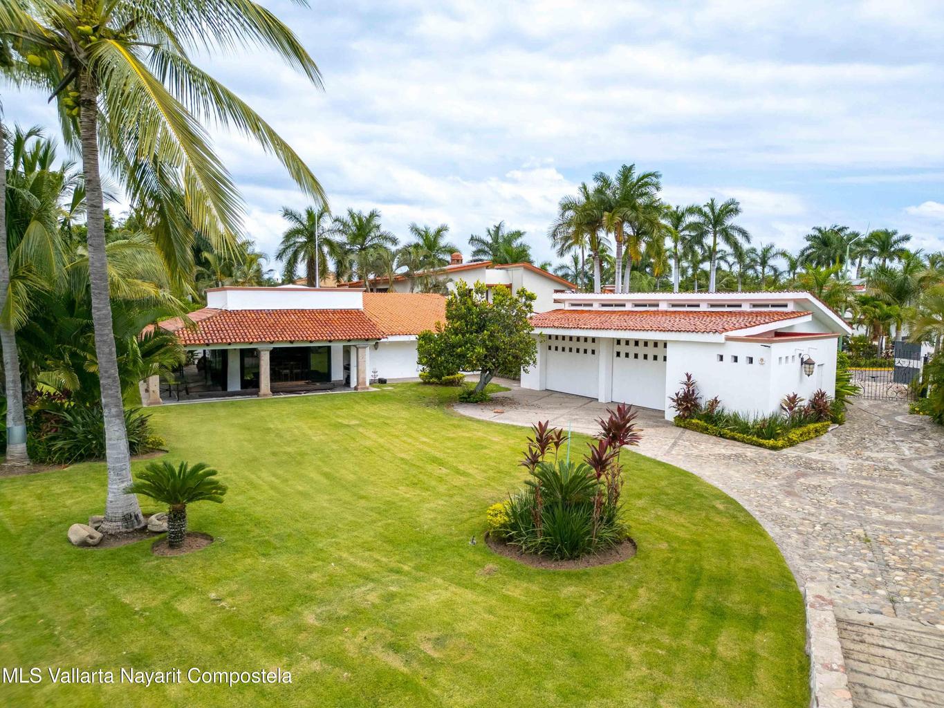 Beautiful house in Nuevo Vallarta with a view to a huge garden area full of trees, palm trees and also the natural canal! This is a single level house, it has carport for 2 cars, huge garage/storage, with a boat included! Beach? The closest is just 9 min away by car. Garden area has a charcoal BBQ grill and a small dock where you can park your boat. This house also offers a separated maids living quarter, there is a security guard at the entrance of the residential and very impotant to mention that this property used to be 2 lots! That is why it has such a outside space. Nuevo Vallarta area is well known for its large sidewalks where you can walk with your pets, jog or be on your bicylce. Also, its one of the neighborhoods that has a lot of restaurants, bars and coffeshops