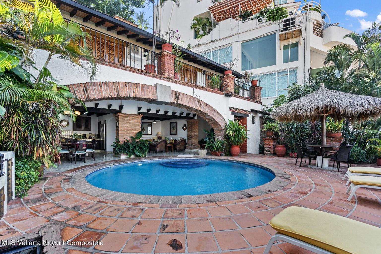 Homes of this caliber are cherished by families for generations and seldom become available. Here is your chance to own a truly exceptional villa in Amapas, boasting street access from both Hortensias and Pulpito. Featuring classic Vallarta architecture, this residence embodies the coveted indoor-outdoor lifestyle that defines Puerto Vallarta. Enjoy breathtaking views of the ocean and church, all while being just a short stroll from world-class dining and vibrant nightlife. This home truly has it all. Living areas are staggered throughout the home, and the amazing pool and kitchen area is pure relaxation. Morning Yoga or Tai Chi, read a book, enjoy the pool area, and finish your day with a gourmet meal poolside.