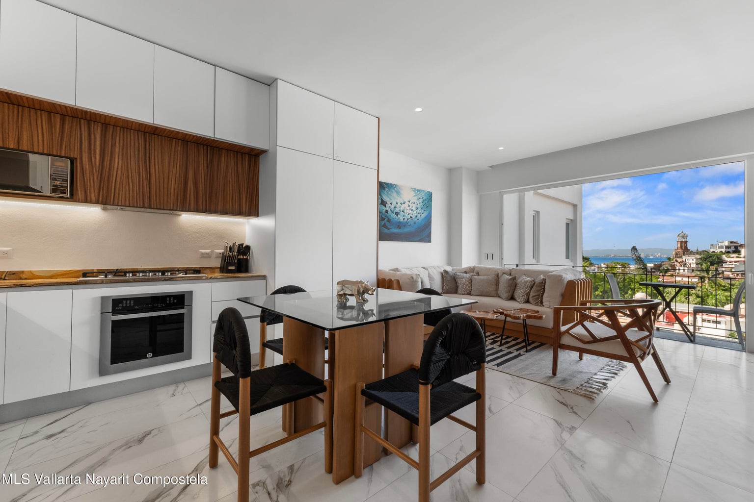 Experience elevated living in this turnkey 2-bedroom, 2-bath condo at Avida Residences, Puerto Vallarta's premier LEED Gold Certified building. Fully furnished and move-in ready, this modern home features electric blinds, a sleek gourmet kitchen, and an open-concept showcasing spectacular ocean and city views from every room. Enjoy world-class amenities that rival a five-star resort: a rooftop infinity pool with staffed bar, grill area, cabanas, sunbeds, jacuzzi, one of the best condo gyms in town, yoga/crossfit room, co-working spaces, hammocks, fire pit, 24-hour security and so much more.