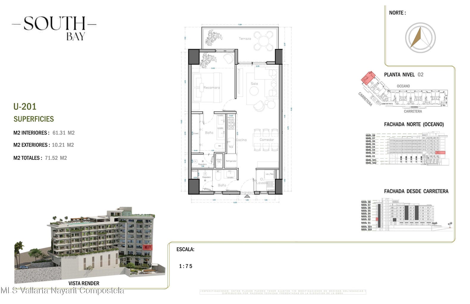 English below South Bay es un nuevo y exclusivo desarrollo ubicado en el corazón de la Zona Romántica, a pocos pasos de playas, restaurantes, galerías y vida nocturna. El proyecto contará con 65 condominios con vistas y en diversas configuraciones: unidades de 1 recámara, 1 recámara + flex, 1 recámara + den y 2 recámaras, todas con 2 baños completos. Con amenidades de primer nivel que incluyen: *Estacionamiento y bodegas disponibles para la mayoría de las unidades (con costo extra) *Alberca con vistas panorámicas en la azotea con terraza para asolearse *Gimnasio, área para mascotas y cancha de pádel única en la zona *Elevadores, acceso controlado y elegante lobby Ubicado sobre una vía principal, South Bay combina accesibilidad, amenidades modernas y estilo de vida, siendo