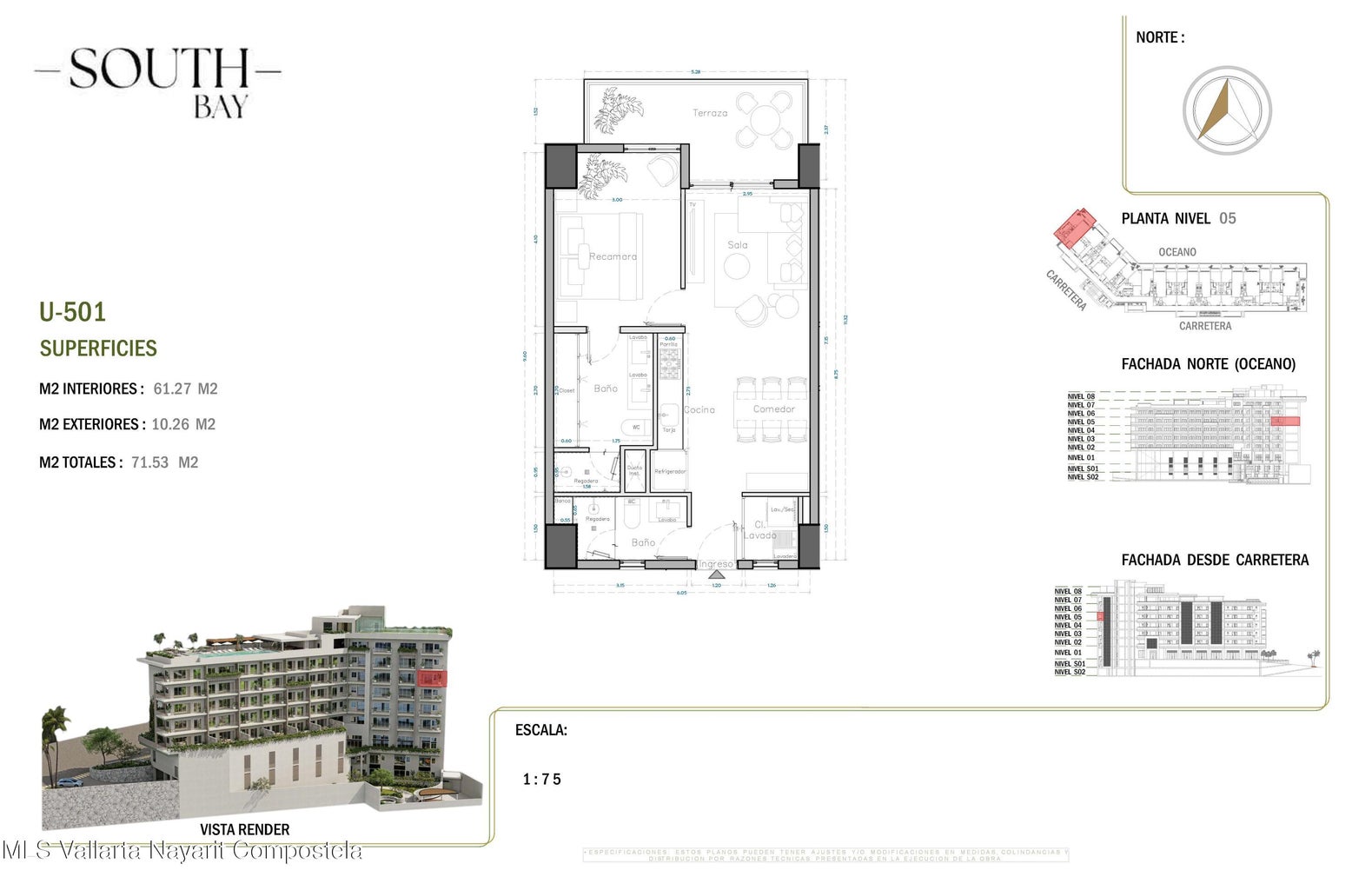 English below South Bay es un nuevo y exclusivo desarrollo ubicado en el corazón de la Zona Romántica, a pocos pasos de playas, restaurantes, galerías y vida nocturna. El proyecto contará con 65 condominios con vistas y en diversas configuraciones: unidades de 1 recámara, 1 recámara + flex, 1 recámara + den y 2 recámaras, todas con 2 baños completos. Con amenidades de primer nivel que incluyen: *Estacionamiento y bodegas disponibles para la mayoría de las unidades (con costo extra) *Alberca con vistas panorámicas en la azotea con terraza para asolearse *Gimnasio, área para mascotas y cancha de pádel única en la zona *Elevadores, acceso controlado y elegante lobby Ubicado sobre una vía principal, South Bay combina accesibilidad, amenidades modernas y estilo de vida, siendo