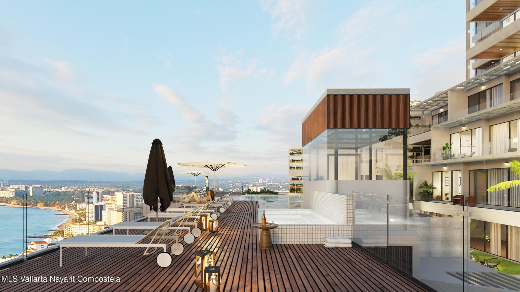 English below Disfruta de impresionantes atardeceres, amaneceres, fuegos artificiales y más, con una espectacular vista panorámica de la bahía. MDY es, sin duda, el desarrollo más exclusivo en el centro de Puerto Vallarta, destacando por su sistema de construcción en concreto y acero, diseñado para mitigar el impacto del cambio climático. Además, somos el único desarrollo en la zona con certificación internacional LEED (edificación sustentable), reafirmando nuestro compromiso con el medio ambiente. Ubicado en la colina y rodeado de exuberante selva, MDY ofrece vistas inigualables de toda la bahía, el escenario perfecto para disfrutar la belleza de Puerto Vallarta. Nuestros finos acabados interiores de mármol y cuarzo, junto con nuestro equipamiento certificado, nos convierte